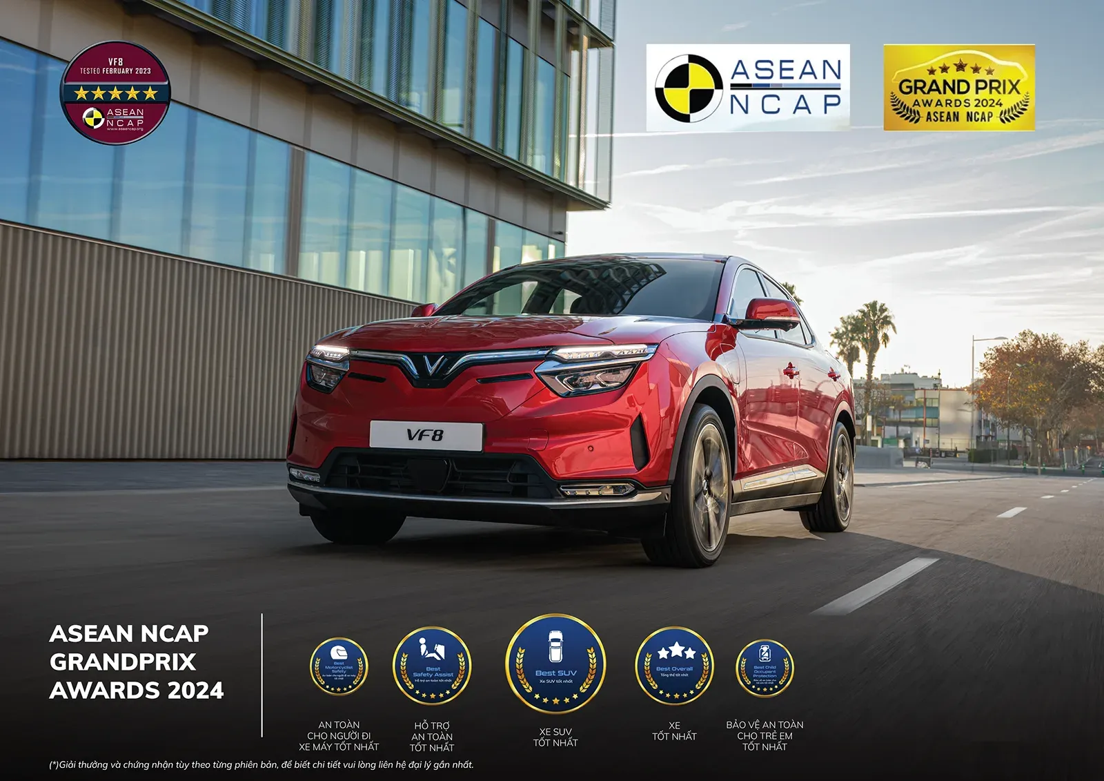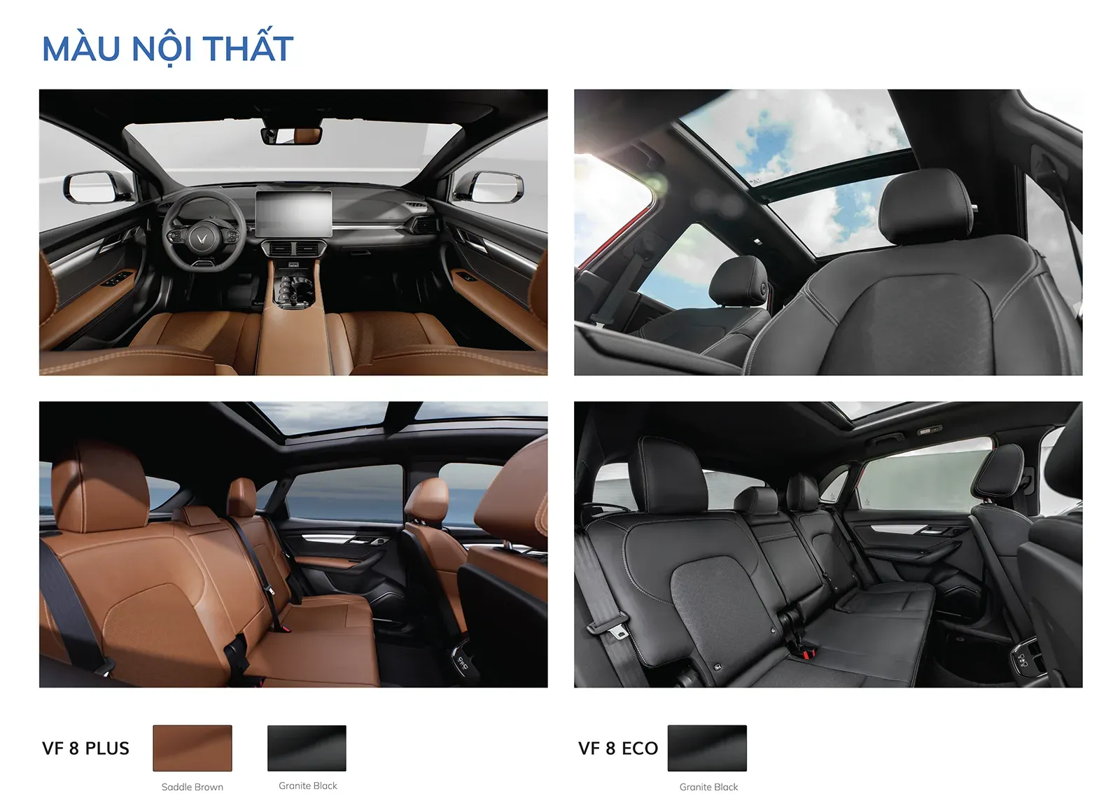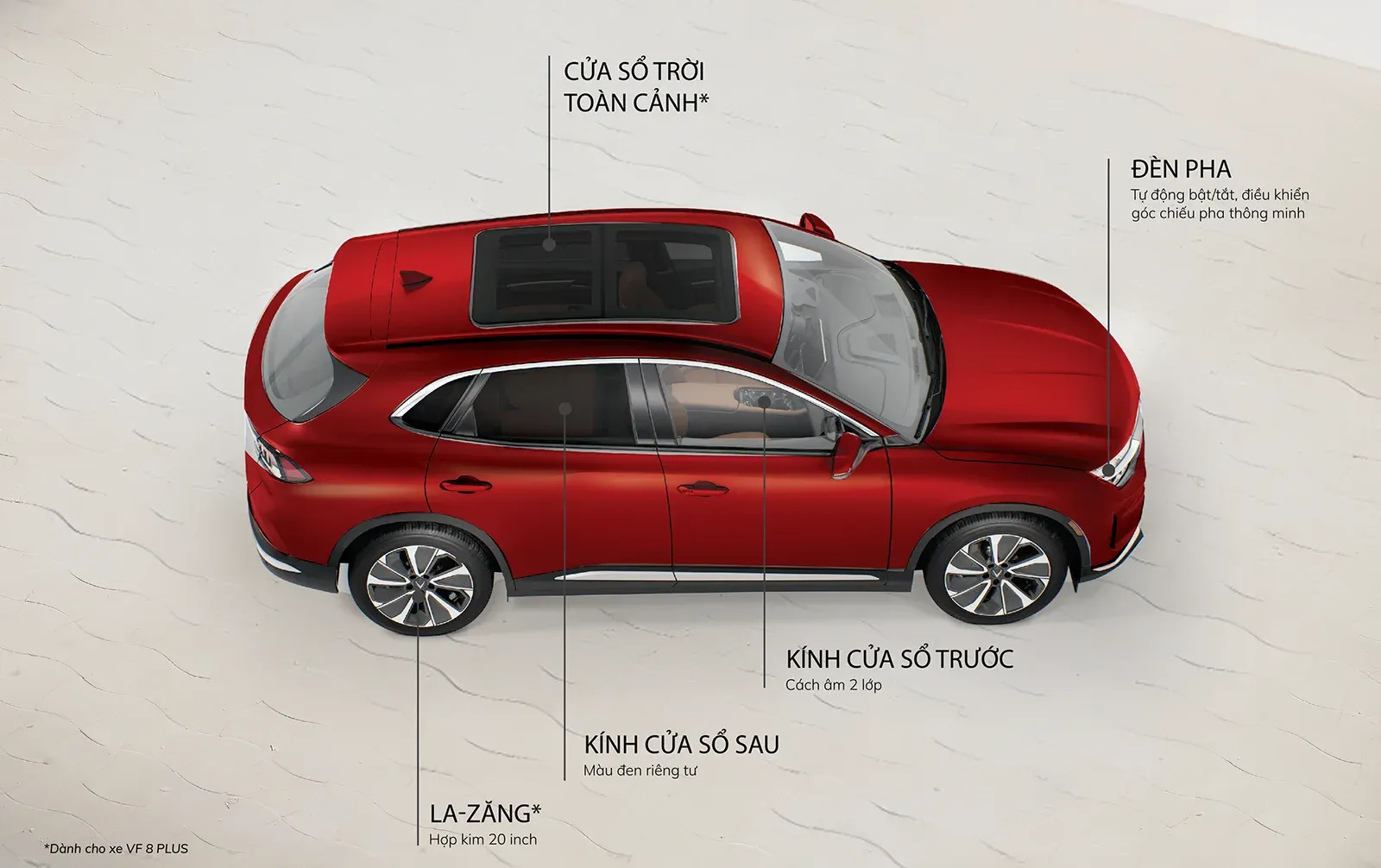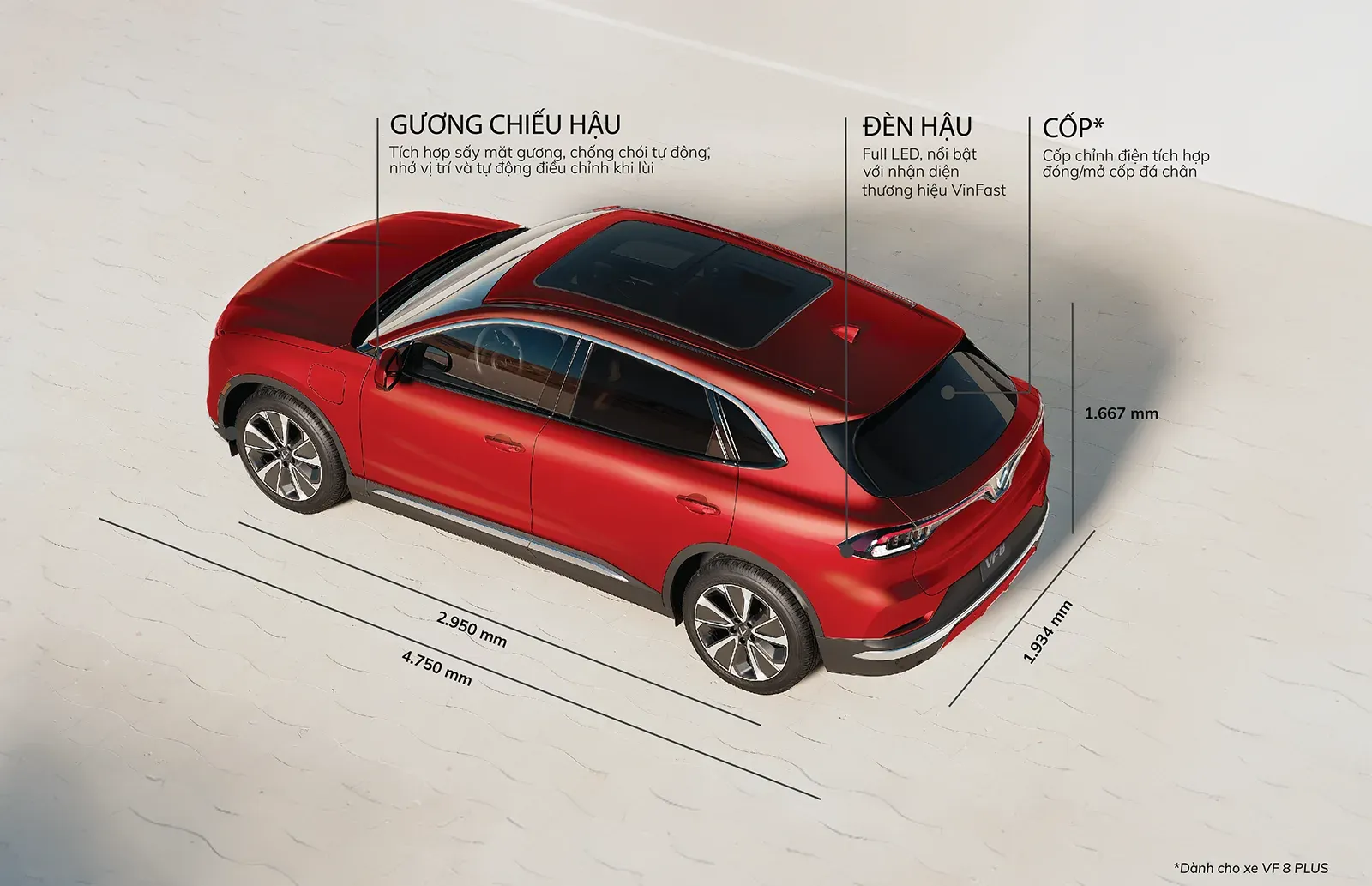 VinFast VF 8 là mẫu SUV điện thông minh tầm trung, nổi bật với hiệu năng mạnh mẽ và công nghệ tiên tiến hàng đầu. Phiên bản VF 8 Plus trang bị hai động cơ điện toàn thời gian (AWD), công suất tối đa 300 kW (402 hp), mô-men xoắn 620 Nm, tăng tốc 0–100 km/h chỉ trong 5,58 giây. Xe có quãng đường di chuyển đến 562 km (NEDC) cùng ba chế độ lái Eco / Normal / Sport.